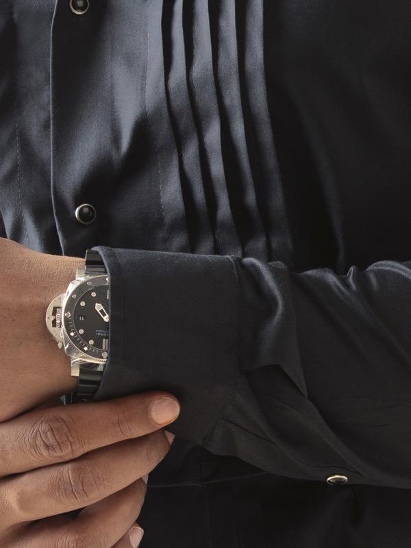 This slim-fit, men’s shirt is crafted from superfine 100% cotton. The Tuxedo styling is embellished with black “Snap Buttons” & a Cut Away collar. The perfect look when the dress code says Black Tie.