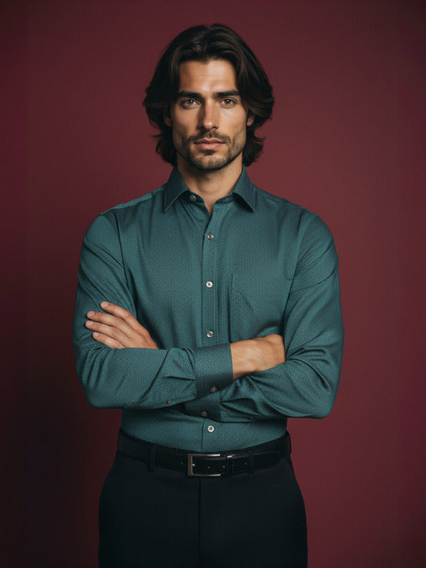 Dolcetto Green Solid Full Sleeve Single Cuff Classic Fit Semi Formal Dark Silk Touch Egyptian Giza Cotton Shirt