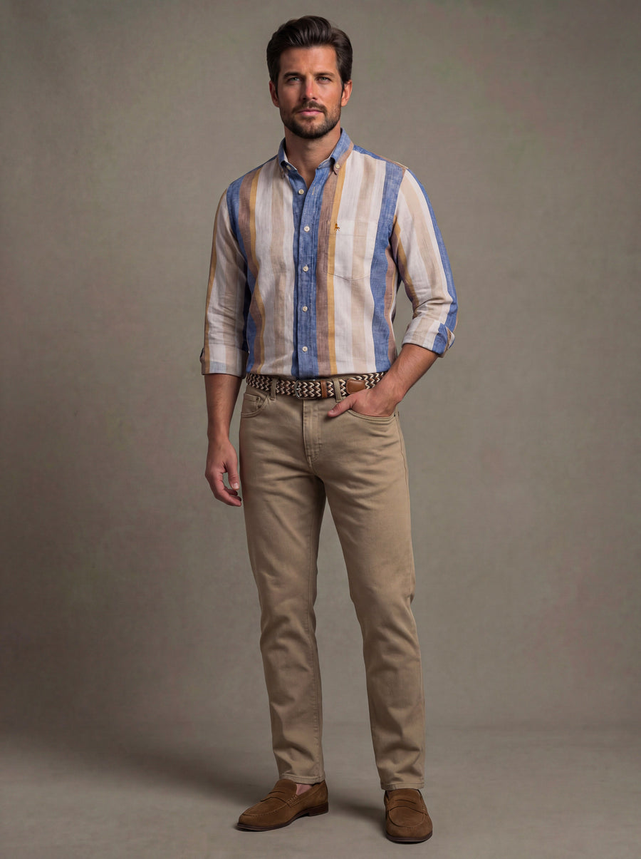 This 100% cotton shirt in tailored fit has been manufactured with environmentally conscious processes focusing on conserving the planet and its natural resources. We have given it our "Eco-Friendly Trademark Vintage Wash" for a super-soft hand feel.