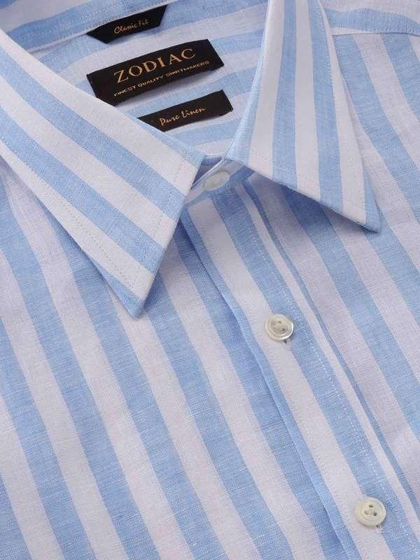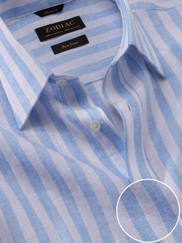 Positano Sky Striped Full Sleeve Single Cuff Classic Fit Semi Formal Point collar Linen Shirt