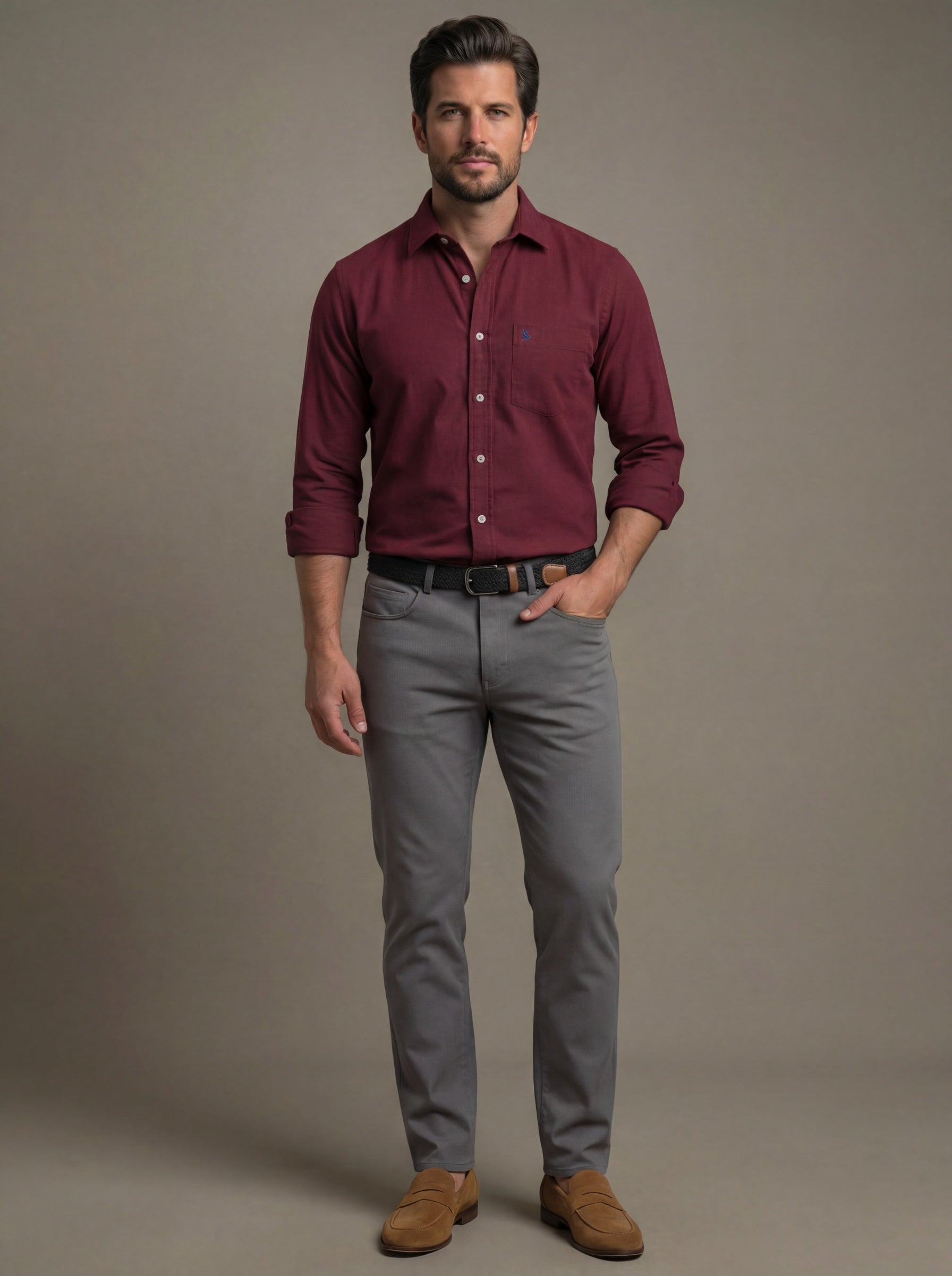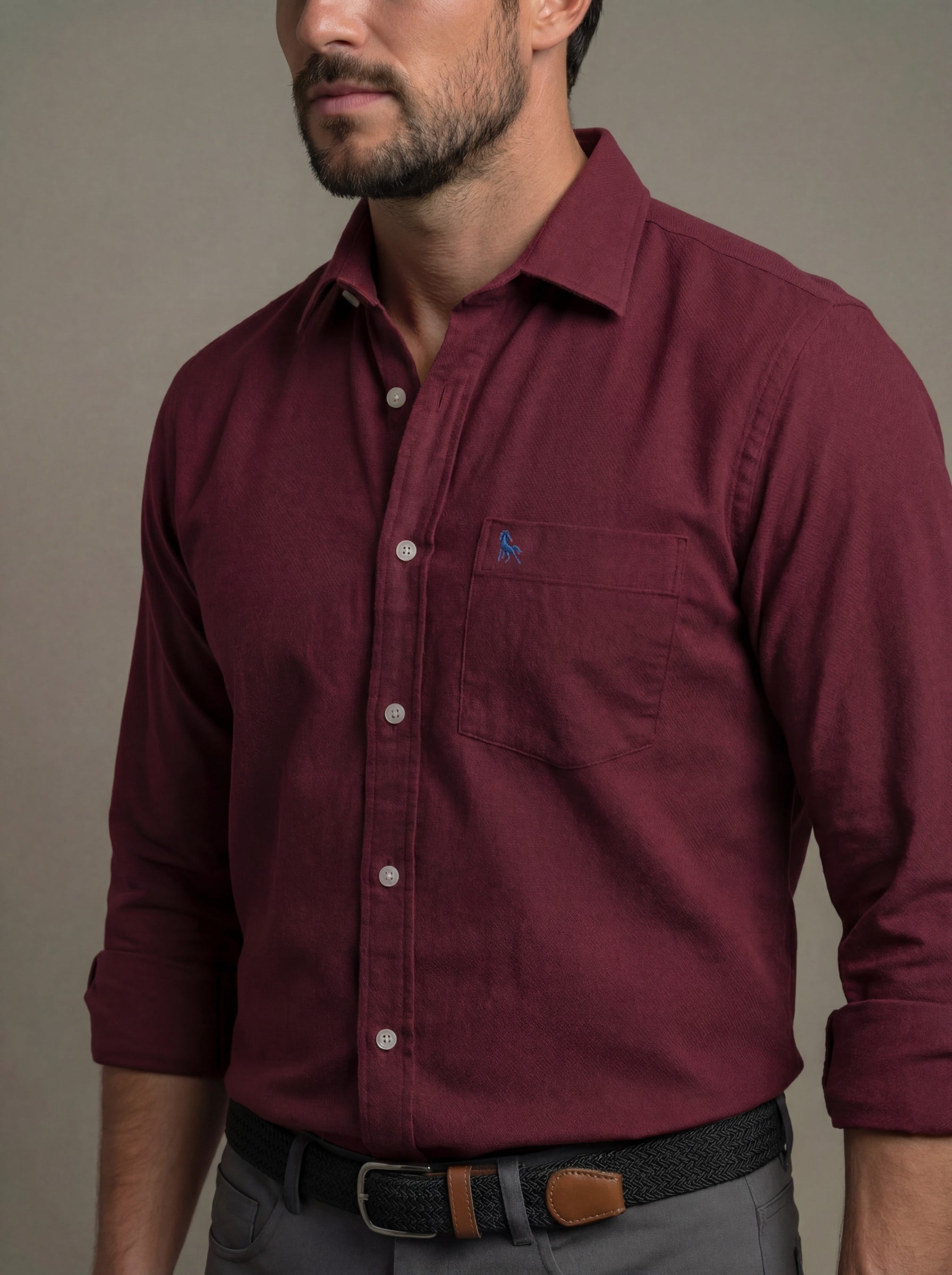 Starka Dobby Garment Dyed Maroon Full Sleeve Tailored Fit Casual Cotton Shirt