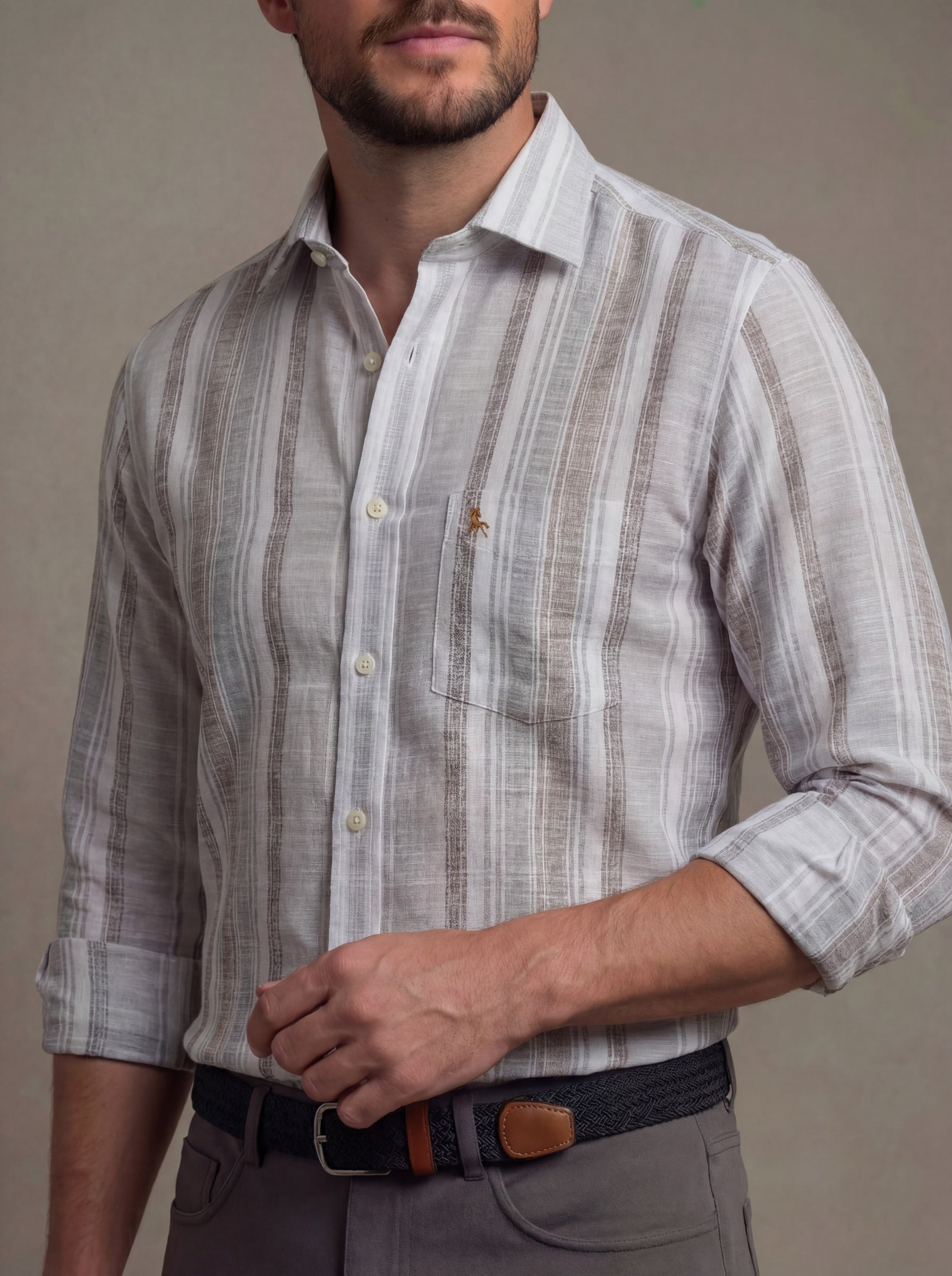 Tenerife Crepe Grey Striped Full Sleeve Tailored Fit Casual Cotton Shirt