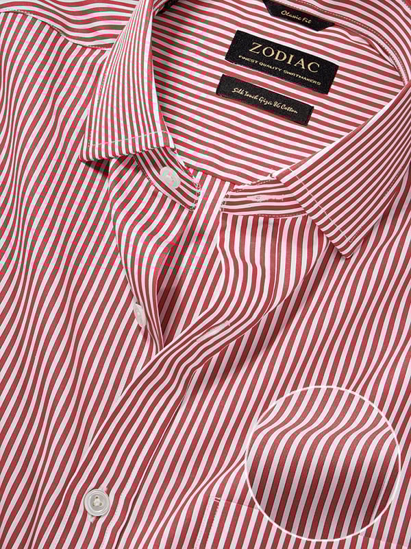 Vivace Red Striped Full Sleeve Single Cuff Classic Fit Semi Formal Silk Touch Egyptian Giza Cotton Shirt